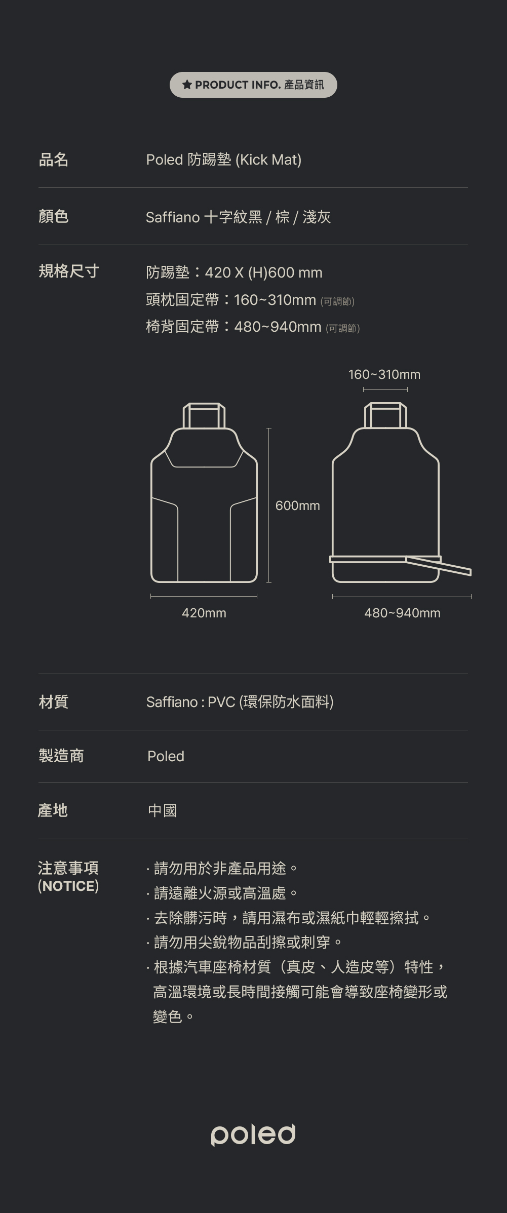 產品名稱 Poled | 3D兒童汽座保護墊 / 汽車座椅防踢墊