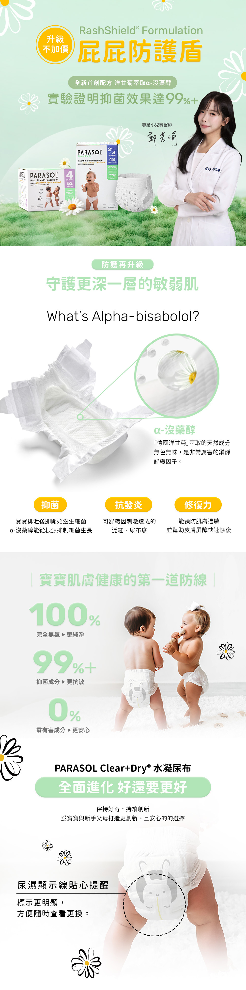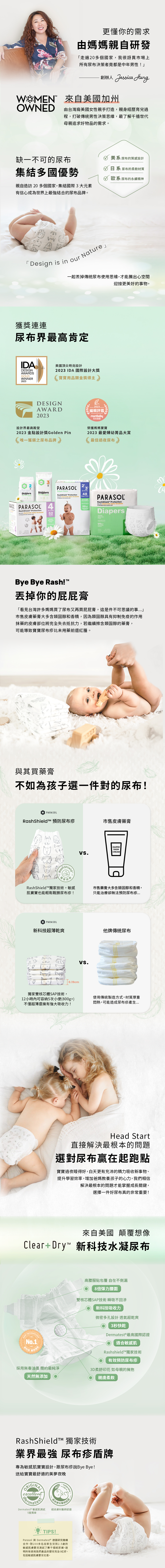 | 工藝升級版 | Parasol Clear + Dry™ 新科技水凝尿布 3號/M | 256片/箱 |