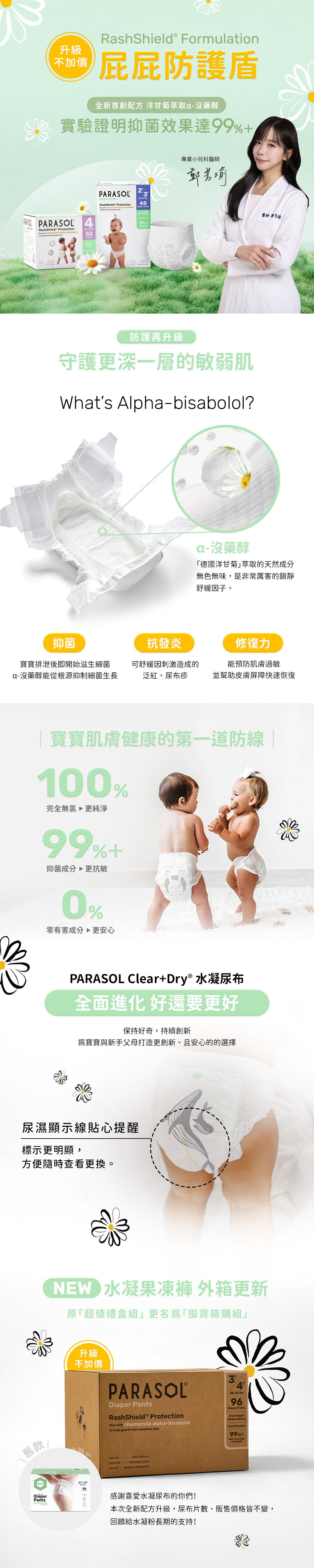 | 工藝升級版 | Parasol Clear + Dry™ 新科技水凝果凍褲 3T-4T / XL | 48片/盒 |