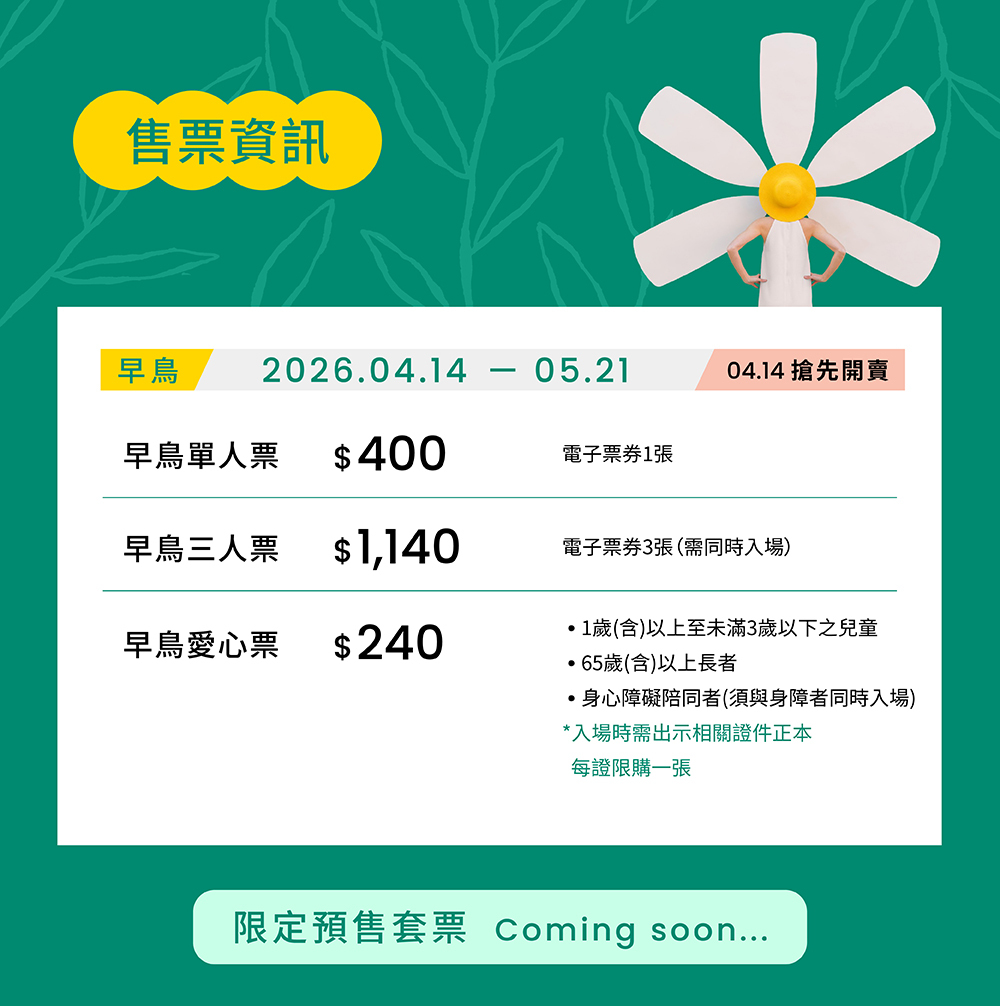 .早鳥販售:2026/4/14(二)~ 2026/6/18(四)