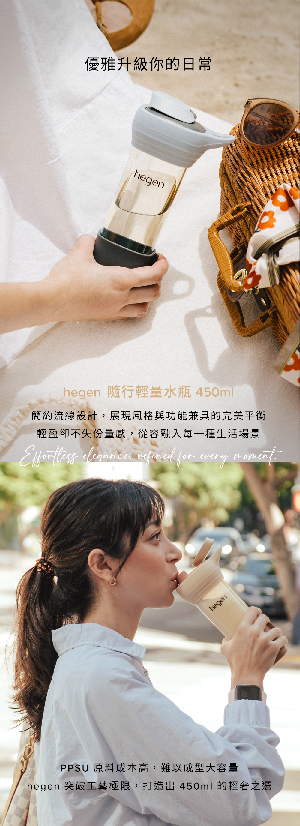 | 1.hegen Lifestyle|PPSU 隨行輕量水瓶 450ml (附矽膠提把和防滑套) | 1 |