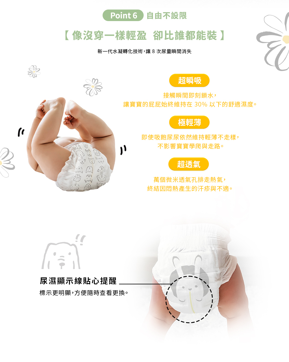.抑菌: 99%+ 抑制細菌生長,從根源預防尿布疹。