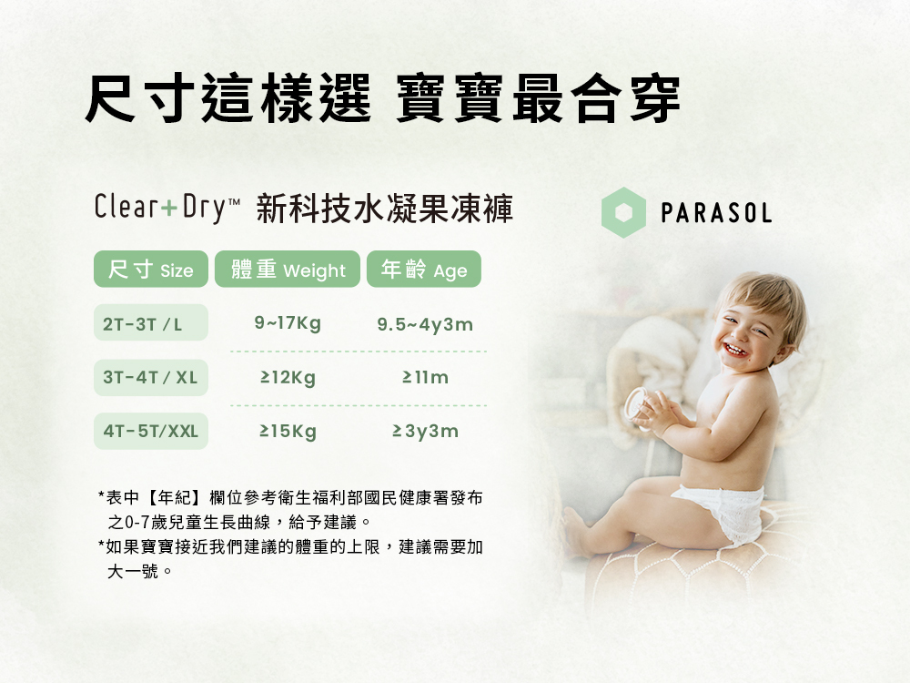 工藝升級版 | Parasol Clear + Dry™ 新科技水凝果凍褲 3T-4T / XL 48片/盒