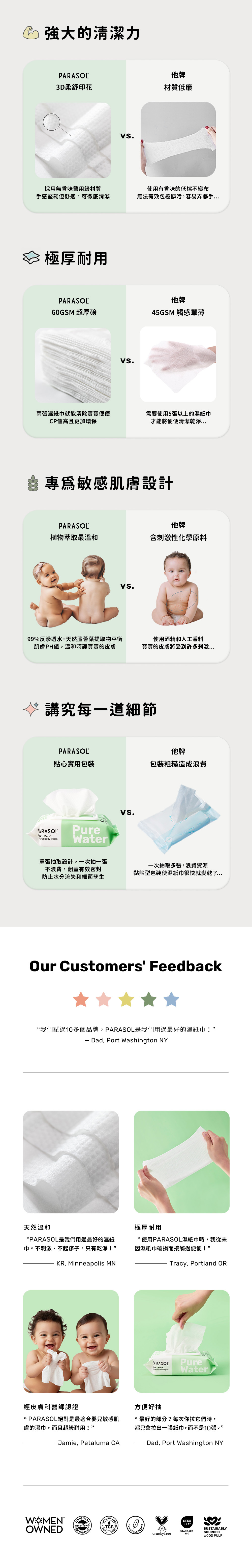 | Parasol Clear+Pure™ 極厚天然肌護濕紙巾 | 30抽/12包 |