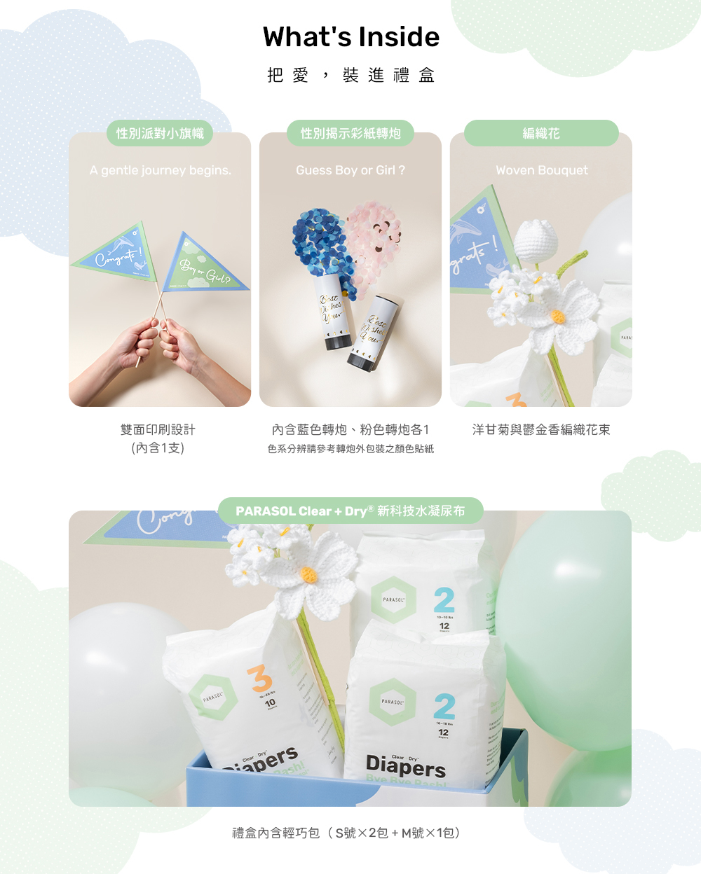 由 babyshower 概念誕生,將性別揭示期待裝進禮盒,