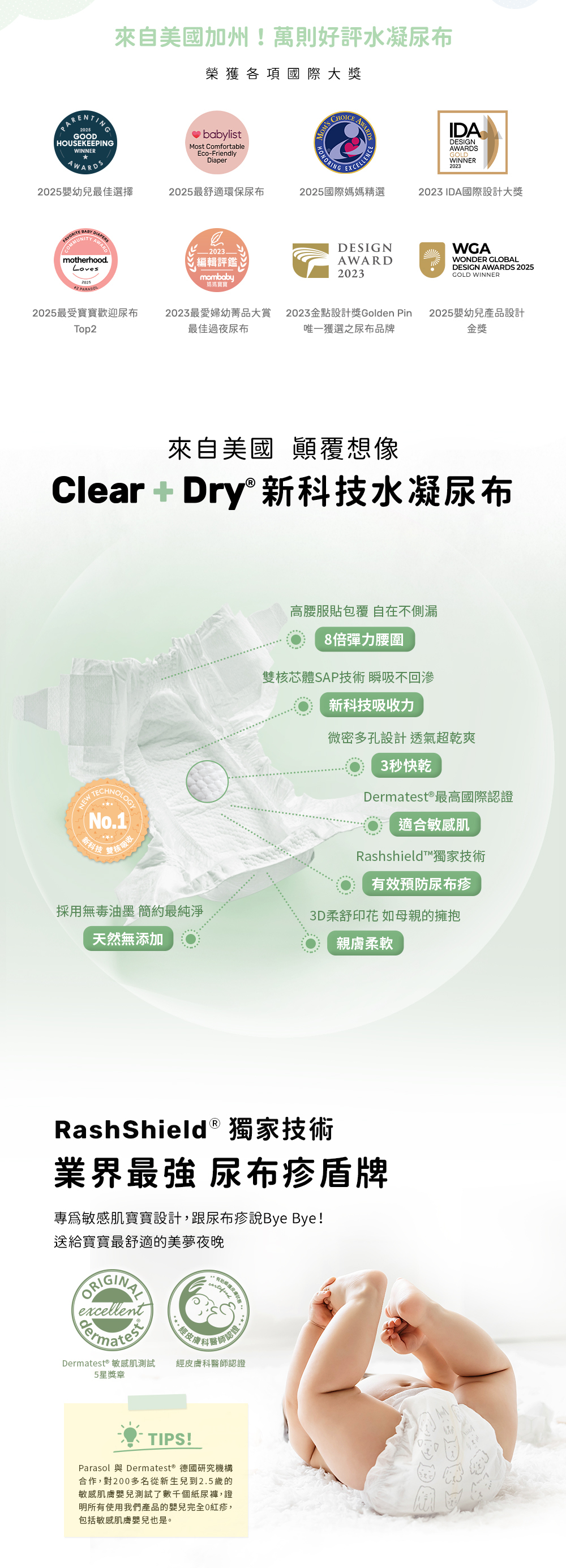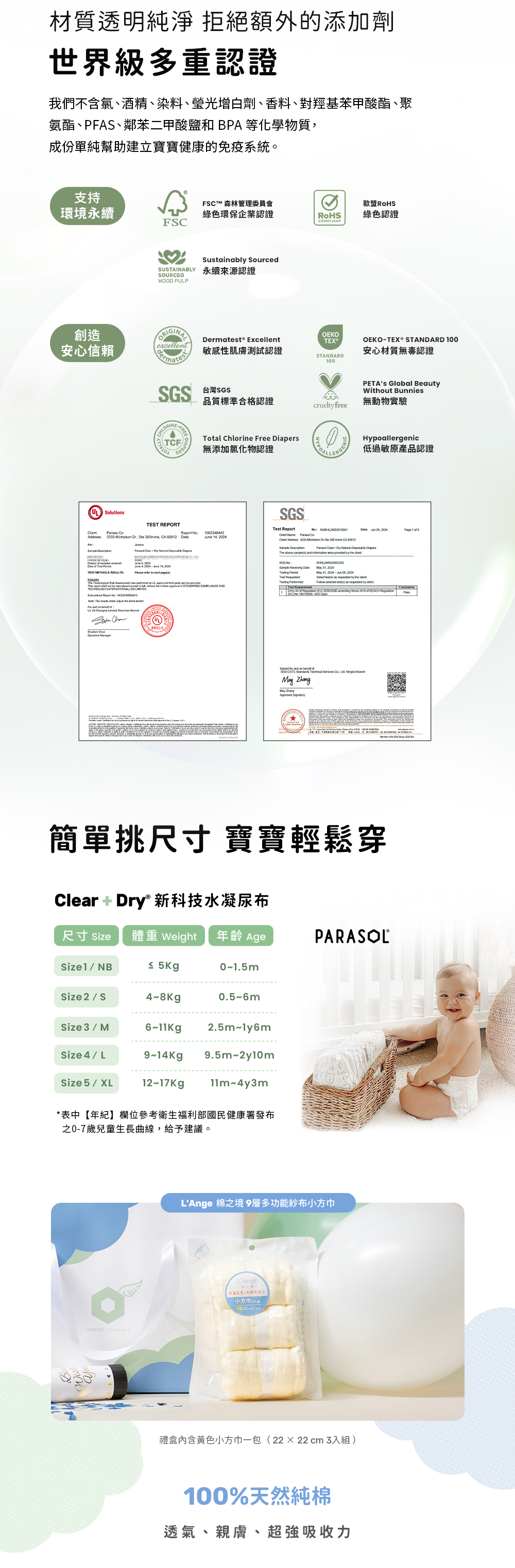 | 工藝升級版 | Parasol Clear + Dry™ 新科技水凝尿布 2號/S | 12 片 / 包 |
